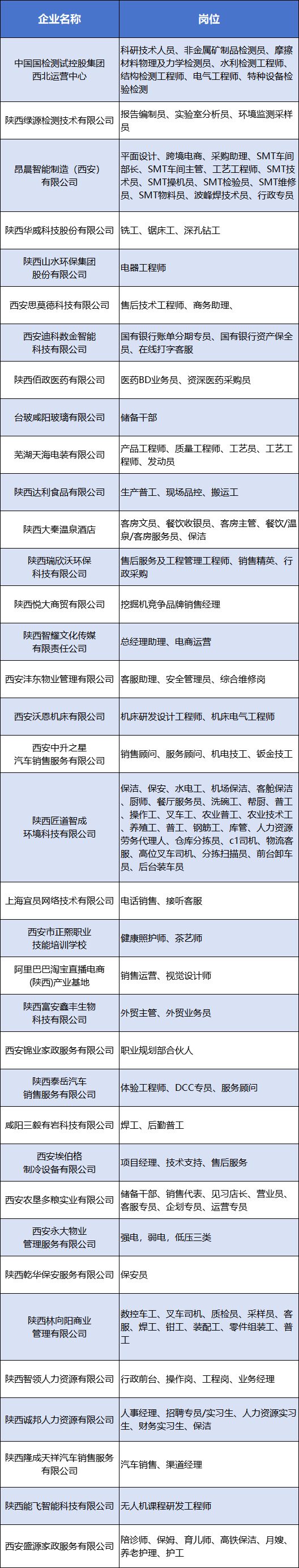 “西咸新區金秋招聘季”民營企業專場招聘會崗位及企業名單