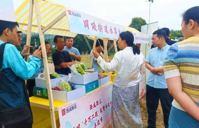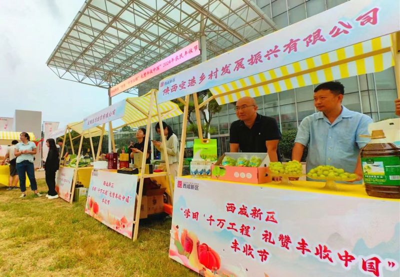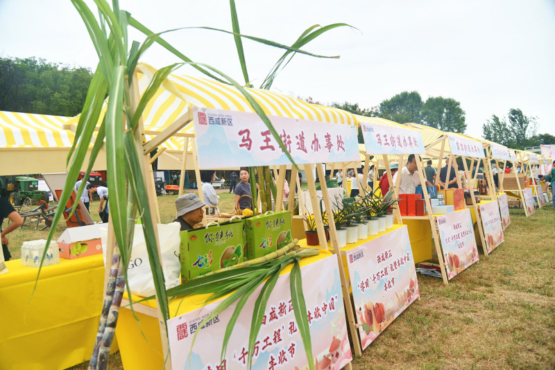 活動(dòng)現(xiàn)場還特別設(shè)置了農(nóng)特產(chǎn)品展示區(qū),新區(qū)農(nóng)業(yè)龍頭企業(yè)和各鎮(zhèn)街近30家合作社、涉農(nóng)企業(yè),帶著近百種特色農(nóng)特產(chǎn)品進(jìn)行集中展示。周陵街道的葡萄、永樂鎮(zhèn)的板栗紅薯、大王街道的香醋、高橋街道石頭饃,以及水果、蔬菜、蜂蜜、酒水、糧油等農(nóng)副產(chǎn)品琳瑯滿目,這個(gè)特別的“集市”吸引了園內(nèi)參觀群眾的駐足關(guān)注。