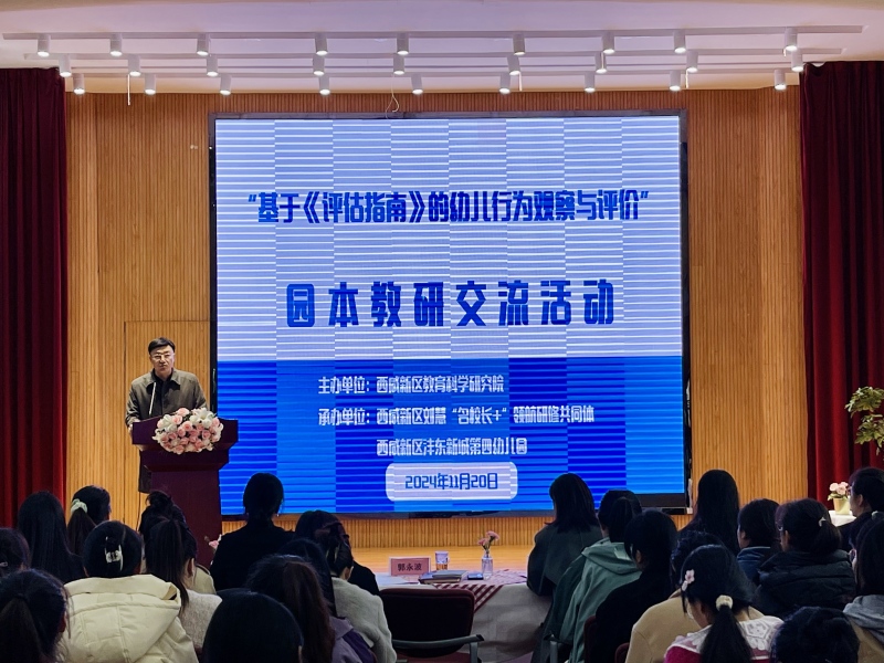 2024年11月20日上午,西咸新區2024年“基于《評估指南》的幼兒行為觀察與評價”園本教研交流活動順利開展。活動由西咸新區教育科學研究院組織,劉慧“名校長+”領航研修共同體、西咸新區灃東第四幼兒園承辦,西咸新區學前兼職教研員及新區各幼兒園園長、教師代表共計160余人參與。