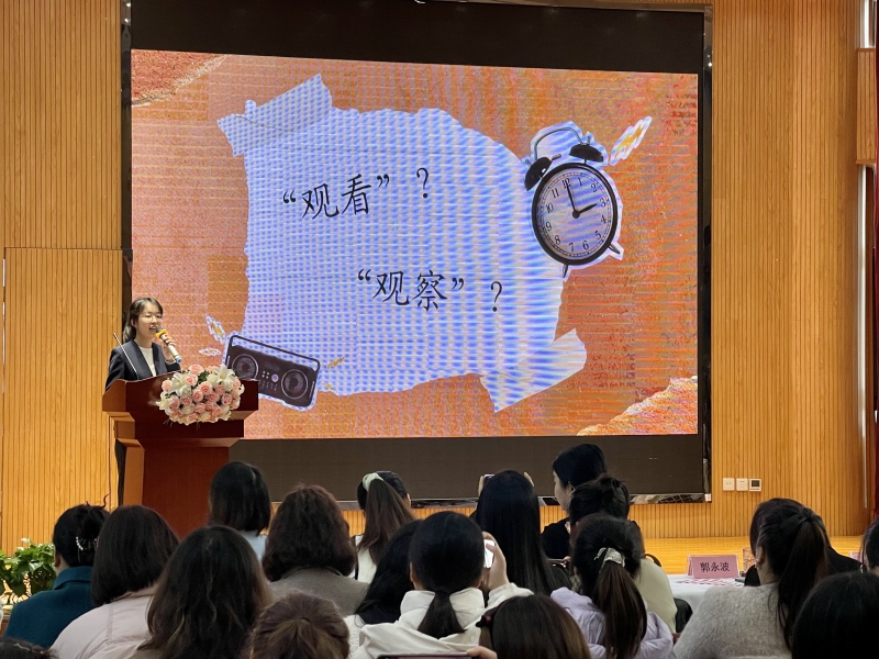 西咸新區灃東第四幼兒園園長劉慧以理論結合實際,深入淺出地闡述了教師應成為“觀察者、支持者、引導者”的核心要義。