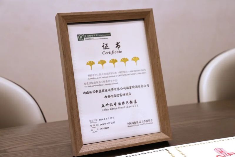 近日位于能源金貿區的西安西咸諾富特酒店成功通過了中國綠色飯店五葉級現場評審及榮譽認證,并順利舉行了揭牌儀式。標志著酒店在環保、健康、安全及資源合理利用等方面達到了國家級最高標準。