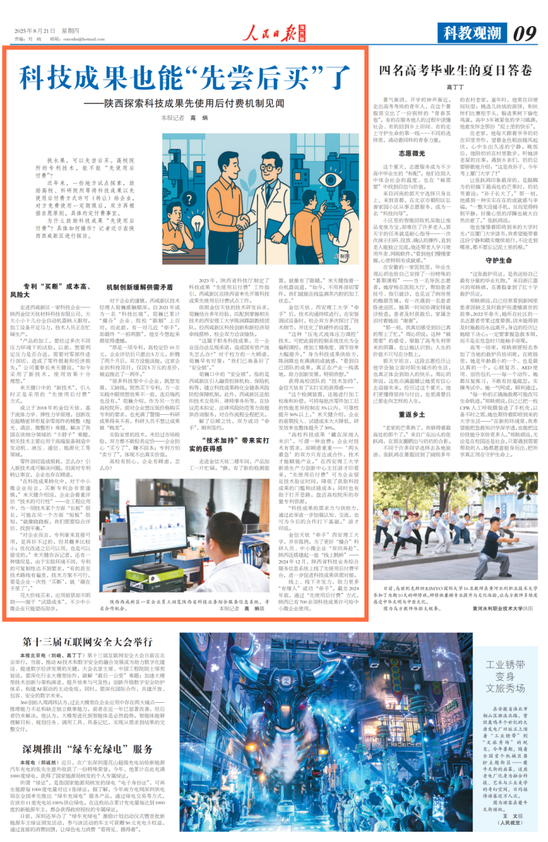 為什么鼓勵(lì)科技成果“先使用后付費(fèi)”?具體如何操作?人民日?qǐng)?bào)記者近日在陜西西咸新區(qū)進(jìn)行探訪。