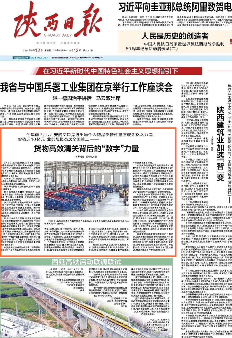 今年前7月,西安航空口岸進出境個人物品類快件量突破398.8萬票、貨值近10億元,業務規模穩居全國第二。