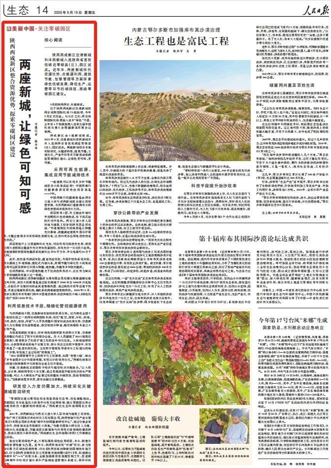 今天,人民日報刊發《兩座新城,讓綠色可知可感》,關注西咸新區整合資源優勢,探索零碳園區建設,全力推動發展方式綠色低碳轉型的創新探索和實踐成效。