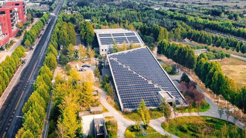 源居樓窗戶上設置遮陽和反光板,可獲得均勻的自然光照,樓頂利用休息棚頂還能進行光伏背板熱量回收,實現光伏一體化技術應用。整座建筑的智慧綠色能源系統面積達2750平方米,年發電量約40萬千瓦時。
