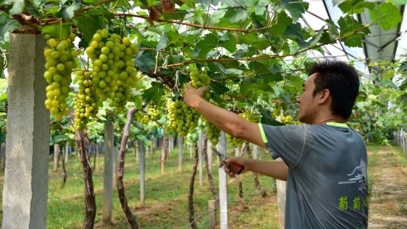 整個葡萄園,都在鋼架大棚里,無論風雨都可以采摘。黑美人葡萄甜度可達20,純甜無酸;陽光玫瑰脆嫩多汁,帶有濃郁玫瑰香。除了摘葡萄,還可以在藤下吃農家飯、燒烤、唱歌,孩子蕩秋千、玩蹺蹺板,大人品酒、下棋、聊天,特別適合全家出行或朋友小聚。