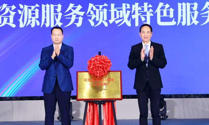 西咸新區(qū)黨工委書記楊仁華、省人才交流服務(wù)中心主任梅曉剛共同為國家級(jí)人力資源服務(wù)領(lǐng)域特色服務(wù)出口基地揭牌
