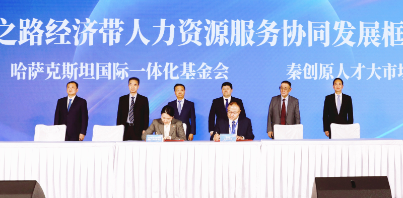 會(huì)上,哈薩克斯坦共和國際一體化基金會(huì)和秦創(chuàng)原人才大市場(chǎng)簽訂《絲綢之路經(jīng)濟(jì)帶人力資源服務(wù)協(xié)同發(fā)展框架協(xié)議》,雙方將通過人才培訓(xùn)、人才交流、政策研究、信息共享等方式,攜手為絲路經(jīng)濟(jì)帶建設(shè)提供有力的人才和智力支持。隨后《絲綢之路經(jīng)濟(jì)帶高層次人才“領(lǐng)航”計(jì)劃戰(zhàn)略合作框架協(xié)議》簽訂。