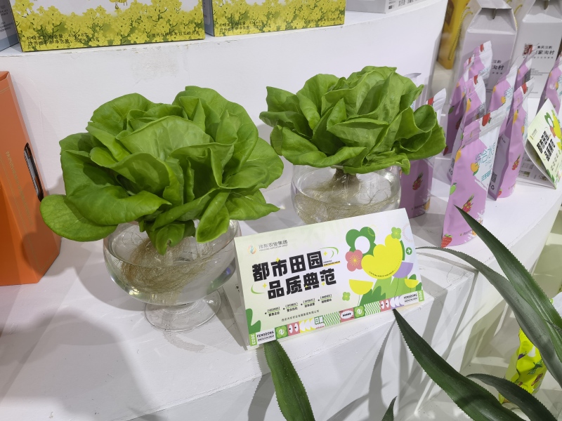 在展區(qū)的另一側(cè),水里生長的蔬菜同樣吸引了不少市民。這是西安灃東現(xiàn)代都市農(nóng)業(yè)示范園培育的水培奶油生菜,可以生食,口感脆嫩爽口、特別鮮嫩。