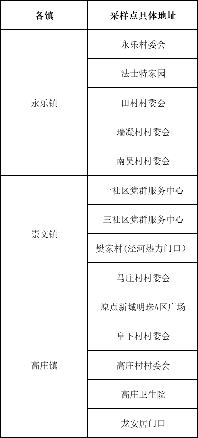 核酸檢測采樣點及具體時間安排以各街道辦事處、社區(村)、單位通知為準,根據檢測需求可能進行調整,請居民群眾留意街道、社區(村)通知,或撥打新區咨詢服務電話了解最新采樣點信息。具體地點詳見后附表格。