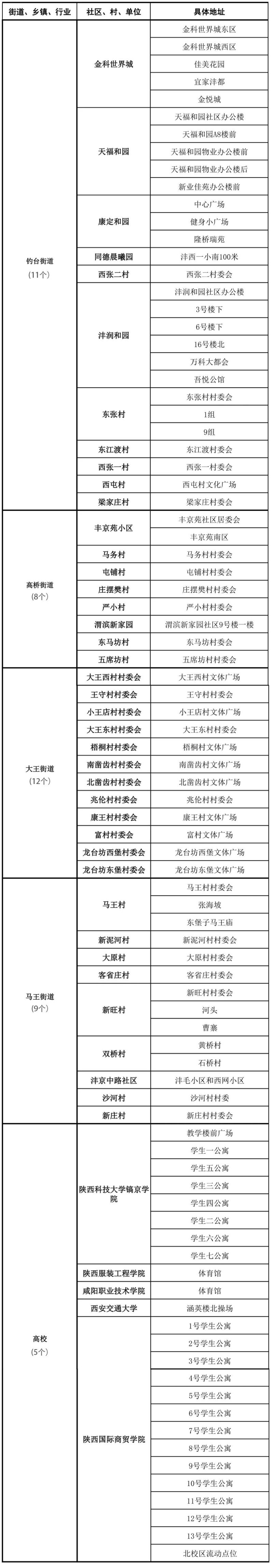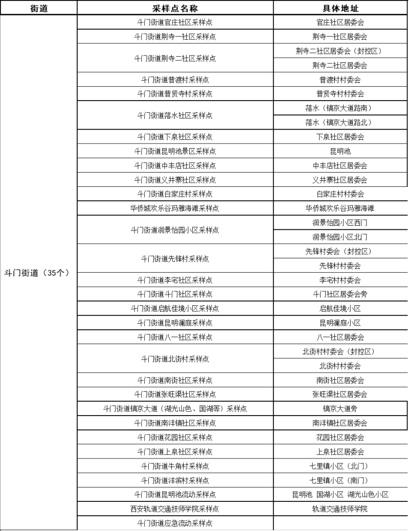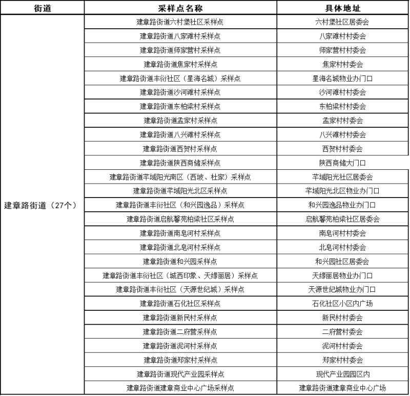 核酸篩查采樣點及具體時間安排以各街道辦事處、社區(村)、單位通知為準,根據檢測需求可能進行調整,請居民群眾留意街道、社區(村)通知,或撥打新區咨詢服務電話了解最新采樣點信息。具體地點詳見后附表格。