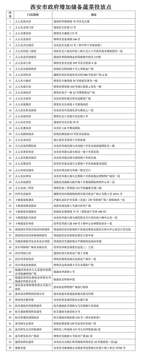 西安市商務局昨日發布公告,今日起在原投放點的基礎上新增55個政府儲備蔬菜投放點。