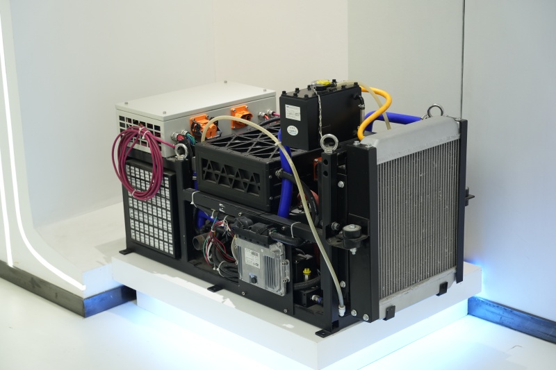 在綜合展區,二十余件展品完整呈現制氫、儲運氫、加氫到用氫的全產業鏈布局。其中,陜西旭氫時代科技有限公司的燃料電池電堆引發廣泛關注。企業技術負責人介紹道,其產品已廣泛應用于商用車、分布式熱電聯供系統等領域,行業領先的功率密度可滿足不同場景的定制化需求。外媒代表們興趣濃厚,紛紛用手機記錄產品細節,并就應用場景與技術優勢進行詳細詢問。