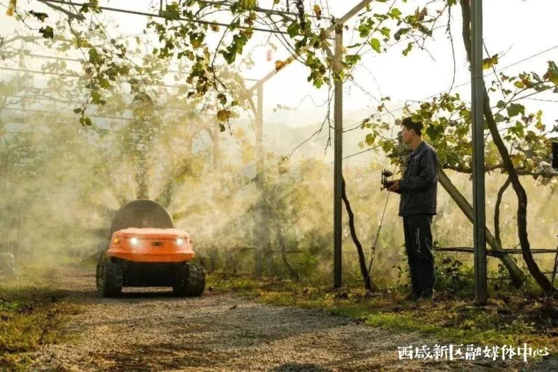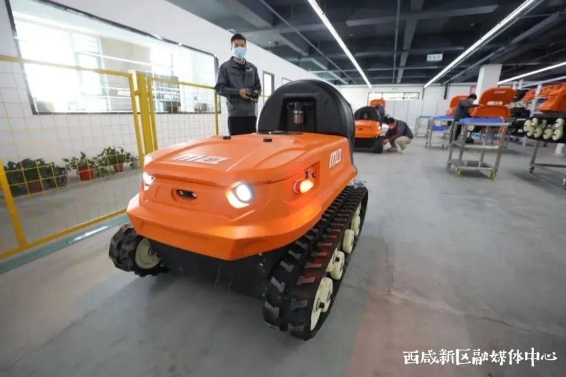 “企業的成長離不開灃西新城的大力扶持,我們得到了新城多重政策和100萬元‘兩鏈’融合資金支持,不到一年,M200農業無人車實現從設計、研發、中試、制造再到量產交付,銷售業績也有了較大增長。此外,我們自主研發生產的第二代M200農業無人車,它的外形酷似坦克,在第一代的基礎上,采用最新制造技術、新能源技術、物聯網技術,其操作更智能、運行更高效、功能更強大,大大提高了作業效率,降低了勞動成本。目前,M200農業無人車已銷往全國多地,并出口到韓國,廣泛應用于果園作業?!便迩刂悄軇撌既思婵偨浝韽埿癯榻B。