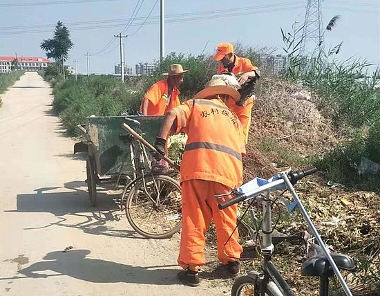 曹坊村清理門前屋后的堆積、雜草、淤泥