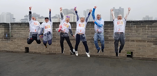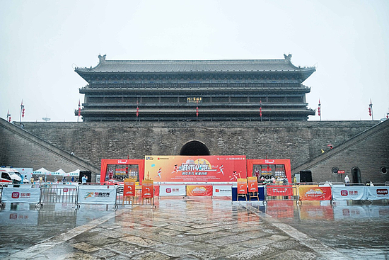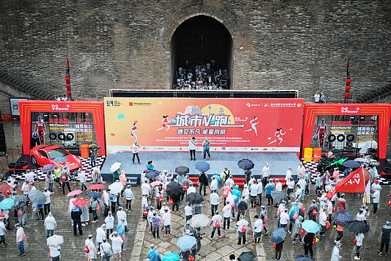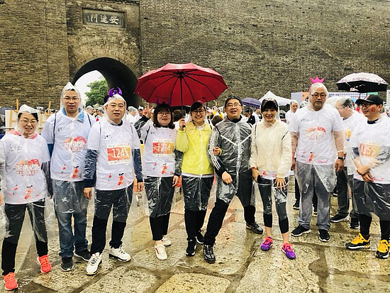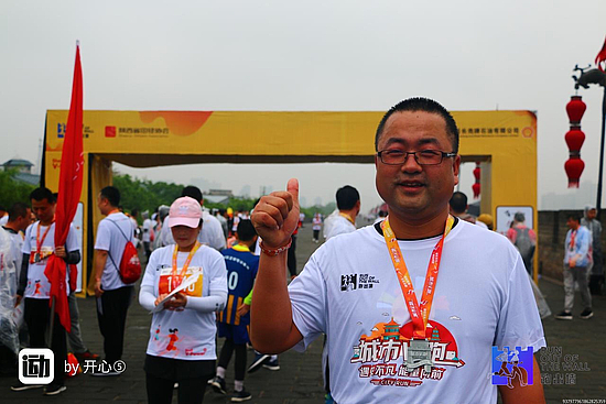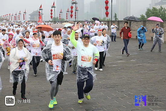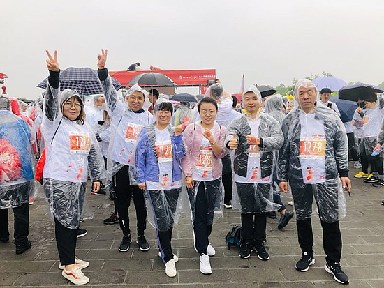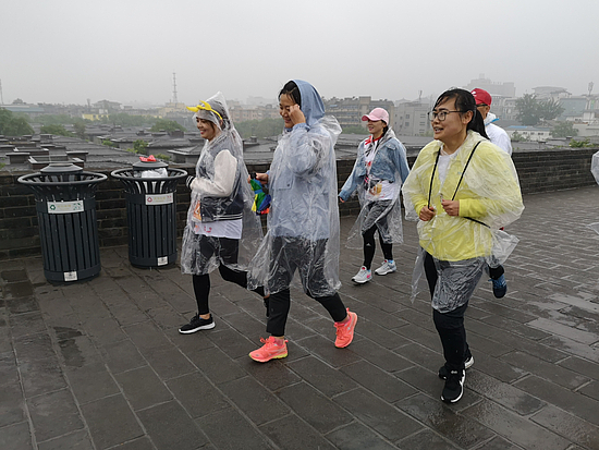雖然當天的降水天氣突如其來,但雨水和降溫并沒有影響西咸新區扶貧干部們的熱情,大家冒雨在清晨集結,在雨中你追我趕,在13.7公里的城墻跑道上揮灑激情。