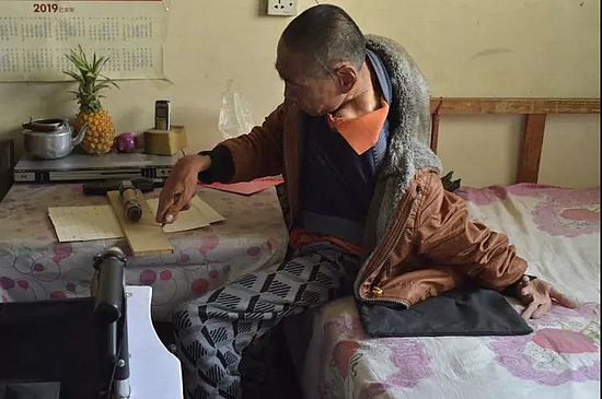 這篇“文章”的作者名叫張永江,是涇河新城永樂鎮(zhèn)大齊村的貧困戶?,F(xiàn)年52歲的他一出生就遭遇了命運(yùn)無情的捉弄——由于出生時(shí)患腦癱疾病導(dǎo)致肢體一級殘疾,常年只能坐在輪椅上,無法上學(xué),沒有勞動(dòng)能力,沒有朋友,只有母親王鳳英與他相依為命。2017年脫貧攻堅(jiān)工作開展以來,張永江感受到了生活的巨大變化——雖然文化程度不高,行動(dòng)不便,但他看到家里的墻變白了,居住條件變好了,生活水平提高了,最重要的是自己母親那張滿是皺紋的臉上笑容一天比一天多了。