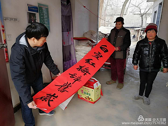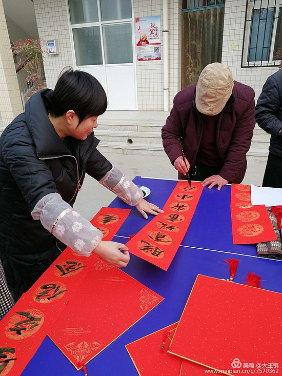 “堅定信念跟黨走,脫貧致富奔小康”、“民安國泰逢盛世,風調雨順頌華年”。1月29日,大王鎮舉辦“幫扶陽光照大地,揮毫潑墨暖人心”為脫貧群眾寫春聯送春聯活動。