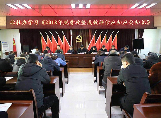 26日下午,北杜辦組織全體機關干部及村級干部在街道四樓會議室召開《2018年脫貧攻堅成效評估應知應會知識》專題學習會,街道辦主任郭斌同志主持并帶領大家進行了學習,會中,通過互動提問的方式加深了對脫貧攻堅知識的學習鞏固。