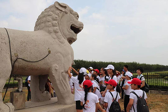 最后一站,孩子們來到全國重點文物保護單位——順陵,經歷了一場文化體驗之旅。孩子們走進陵園,講解員結合一個個生動的歷史故事,帶領大家參觀了華表、走獅、天祿等珍貴歷史文物,了解了唐朝文化發展。孩子們爭先恐后的提問,體現了對歷史知識的濃厚興趣,也打動了工作人員。在得到允許后,大家幸運的與文物古跡進行了一次“親密接觸”。