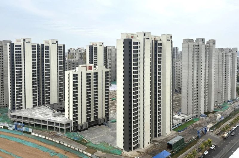 二期項目總用地約84.43畝,配建商業、社區綜合服務用房、公共服務設施等。截至目前,12棟住宅樓主體全面封頂,外立面保溫施工完成90%,窗框安裝已全部完成,公區精裝完成45%。