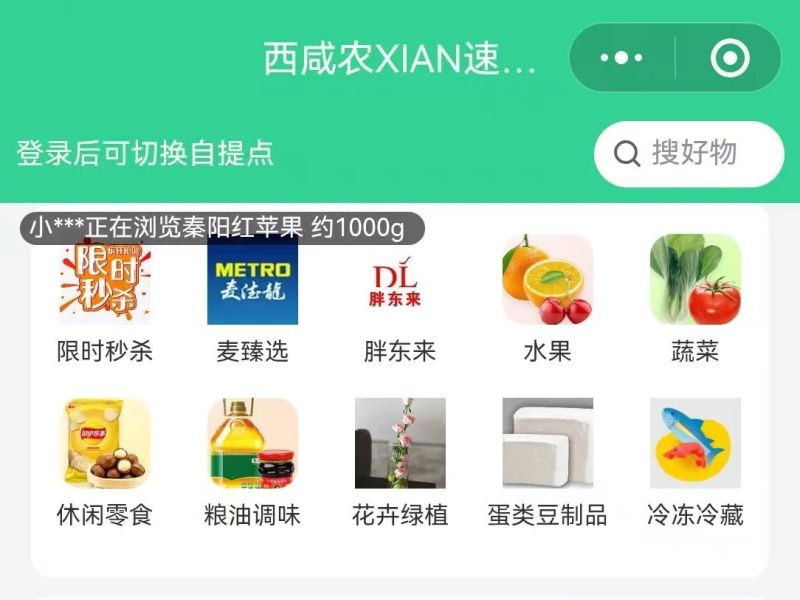 “西咸農XIAN”線上團購小程序:采用“基地直采+社區直供”模式,減少中間流通環節損耗,保障食材新鮮度。小程序現已上線蔬菜、水果、糧油等8大類共100余種精選單品,設置12個配送點,市民可線上下單,選擇就近自提或社區直送服務。