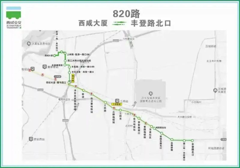 取消站點:上林路·豐昌路口、西工大附小陽光城分校、上林路·能源一路口、漁王村、上林橋南口、金旭路·上林路口、金旭路·朝陽五路口、西北電力建設小區(qū)、金旭路·朝陽六路口、秦漢新城服務中心、朝陽七路中段