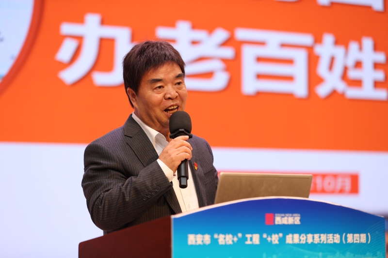 陜西師范大學附屬小學校長侯西科分享了《輻射引領協同發展 推進師大優質資源共享》為主題的“名校+”故事,從教育職責角度出發,指出了“名校+”辦學模式在基礎教育高質量發展進程中發揮的積極作用。并強調,以提升“五力”為抓手,“注重細節 日常浸潤”為教育方式,懷揣教育夢想,秉承教育理念,認認真真書寫好教育人的故事。