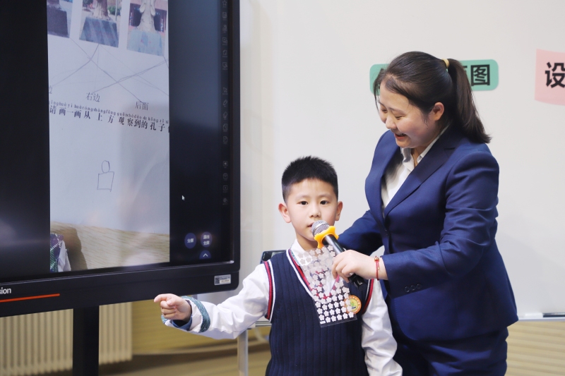 灃東第二小學王瑛老師展示了一年級項目式學習探究課《設計逃生路線》。王老師以四個任務驅動,循序漸進地帶領孩子們觀察、想象、探究,最終繪制出灃東二小逃生路線平面圖。