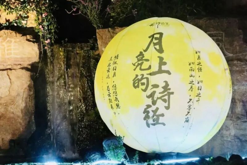 拍照太出片:唐詩紗幔沿路線鋪開,還有百只月兔、空中明月,古風氛圍拉滿,怎么拍都好看。