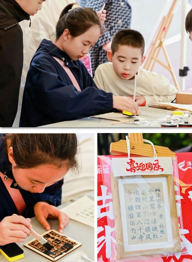 漢風廣場的活字印刷體驗區墨香陣陣,工作人員會提前備好字塊和宣紙,你只需自由組合喜歡的字——不管是古詩名句,還是美好祝福,都能在宣紙上拓印出來,親手感受活字印刷的巧妙,還能把自己拓印的作品帶回家。