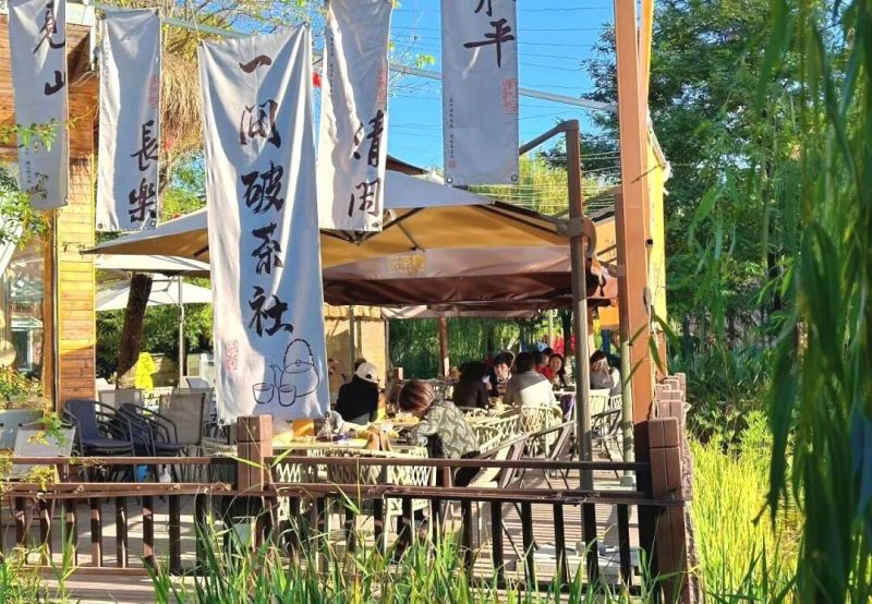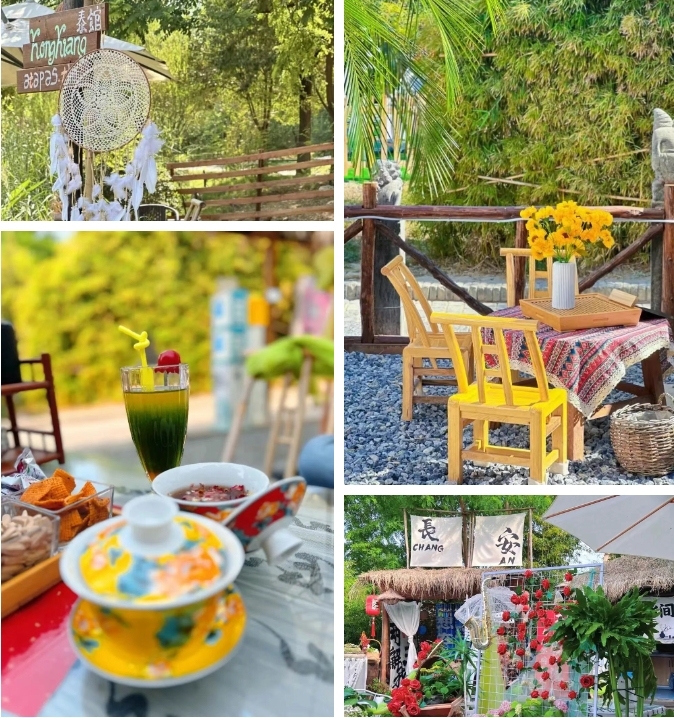 茶社另一側(cè)的東南亞風(fēng)露臺,充滿明艷色彩,仿佛將熱帶海島的活力搬至眼前。陽光穿過枝葉縫隙,在茶桌上投下?lián)u曳光斑,隨手一拍都是氛圍感大片。在這里慢啜茯茶,或是與朋友暢談風(fēng)月,都能享受到恰到好處的自在時(shí)光。