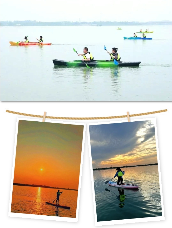 要是想換種方式親近湖水,水上運動千萬別錯過。弘健水上運動休閑中心里,新手也能輕松上手皮劃艇,跟著教練學會握槳、轉向,就能在湖面悠然前行;槳板玩法更豐富,跪姿穩進、站立馳騁都可以,在波光粼粼間感受平衡與力量的樂趣;想體驗團隊協作,龍舟競渡再合適不過,12人或6人組隊,既能感受速度與激情,又能收獲并肩作戰的快樂。