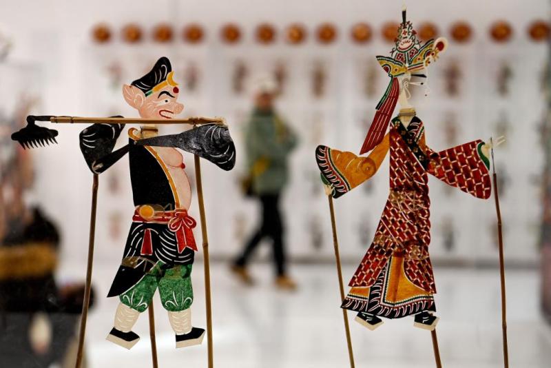 ??1月7日,游客在非遺年貨集市上了解皮影技藝。新華社記者 鄒競一 攝