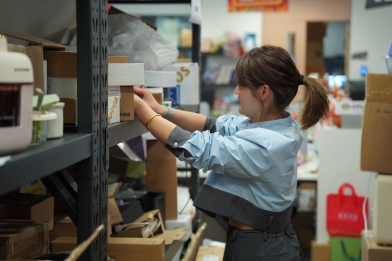 ?美腕直播間工作人員在直播前清點家電樣品。受訪者供圖