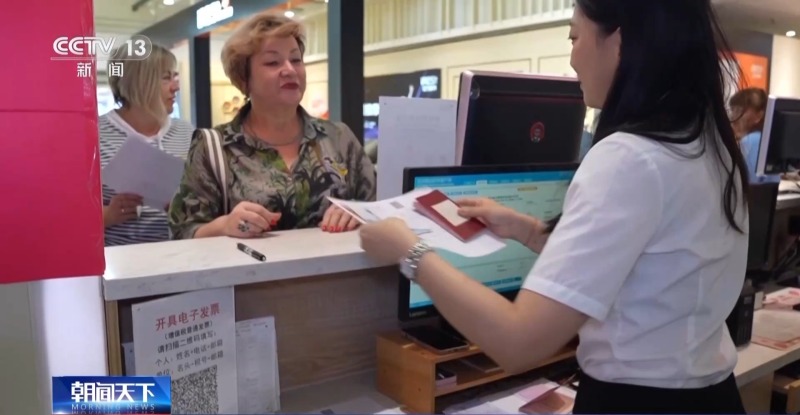 這家商場剛剛啟動了離境退稅業務,外國游客購物后可以到商場內的“即買即退”集中退付點辦理退稅手續,現場就能拿到退稅現金。