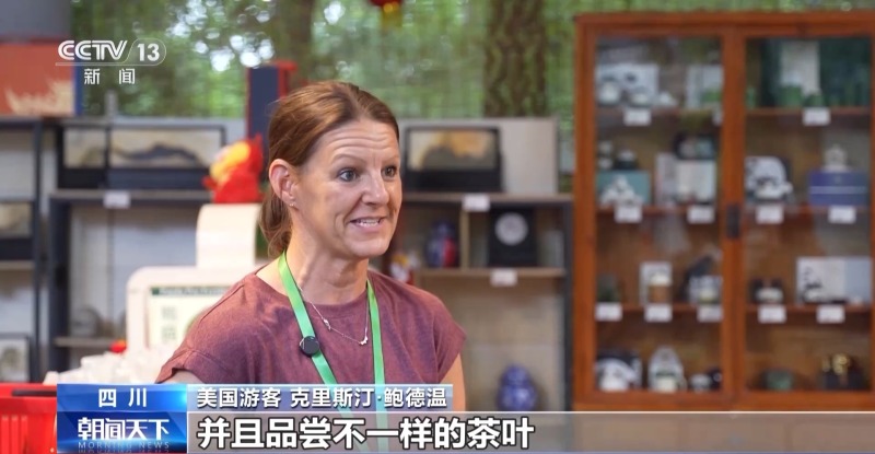 美國游客 克里斯汀·鮑德溫:我現在非常喜歡去茶樓喝茶,并且品嘗不一樣的茶葉。