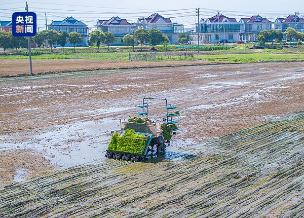△2025年6月16日,江蘇泰州,北斗+5G賦能無人駕駛插秧機智能化作業(yè)。