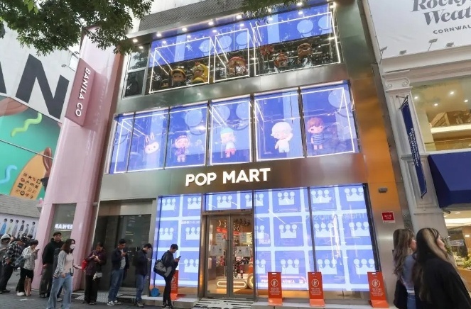 △2025年5月20日,顧客在韓國首爾明洞街區(qū)的泡泡瑪特店面前排隊。