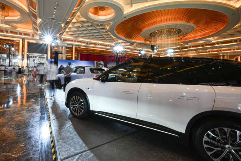 在位于海口的海南國際會展中心,人們在“2025海南國際車展暨海口市新能源汽車下鄉活動”上參觀(2025年5月2日攝)。新華社記者 蒲曉旭 攝