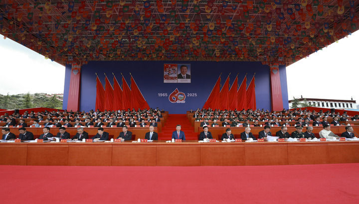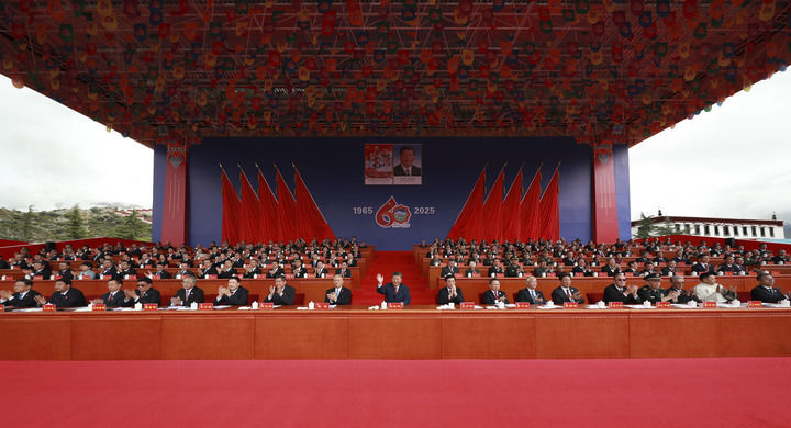 王滬寧發(fā)表講話。他說,1965年9月,在黨中央親切關懷和黨的民族政策光輝照耀下,西藏自治區(qū)宣告成立。這是西藏發(fā)展史上具有劃時代意義的大事,鞏固了西藏和平解放和民主改革的偉大成果,實現(xiàn)了西藏社會制度的歷史性跨越。60年來,西藏經(jīng)濟社會全面發(fā)展,民族區(qū)域自治制度成功實踐,民族團結日益鞏固,各族人民生活蒸蒸日上,充分展現(xiàn)了中國共產(chǎn)黨領導的堅強力量,充分展現(xiàn)了我國社會主義制度的顯著政治優(yōu)勢。