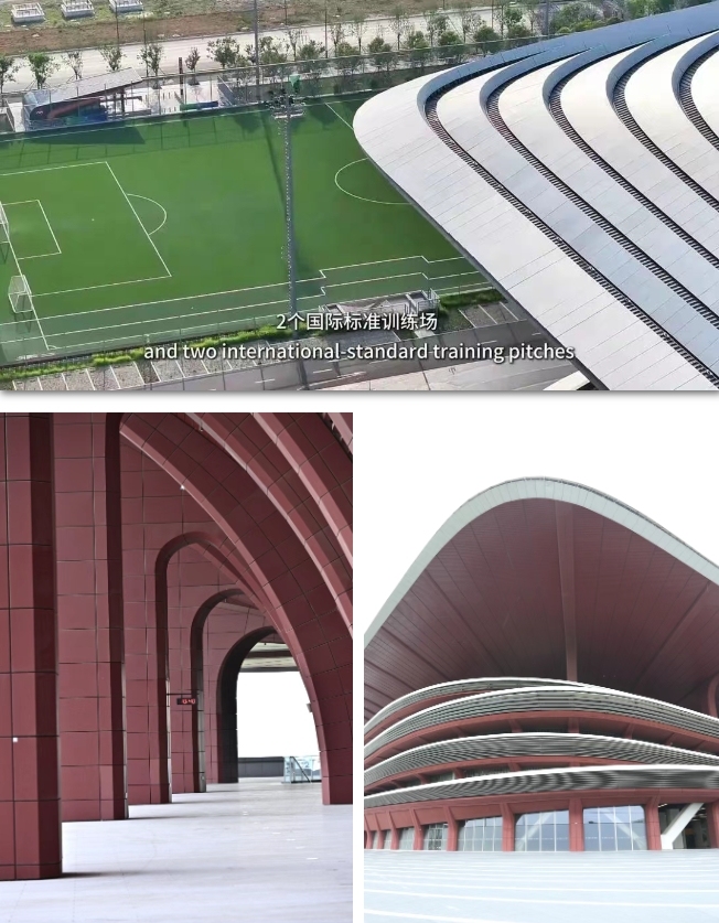 吉祥的寓意融于建筑細節,鳥瞰足球中心,八角形元素既象征“八喜臨門”的傳統吉祥寓意,其比例又嚴格遵循西方黃金分割,從恢弘主體到精微柱頭,理性幾何與傳統符號達成完美共生。