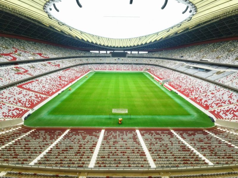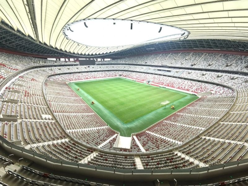 站在馬鞍形看臺,這里可以容下6萬余人同時觀賽,視覺質量(C值)均超90,還有360度環繞屏幕與FIFA標準音響構成聲光電交響,配合瞬時啟閉的防眩光LED系統,無論現場觀賽或高清轉播皆能呈現完美畫質。
