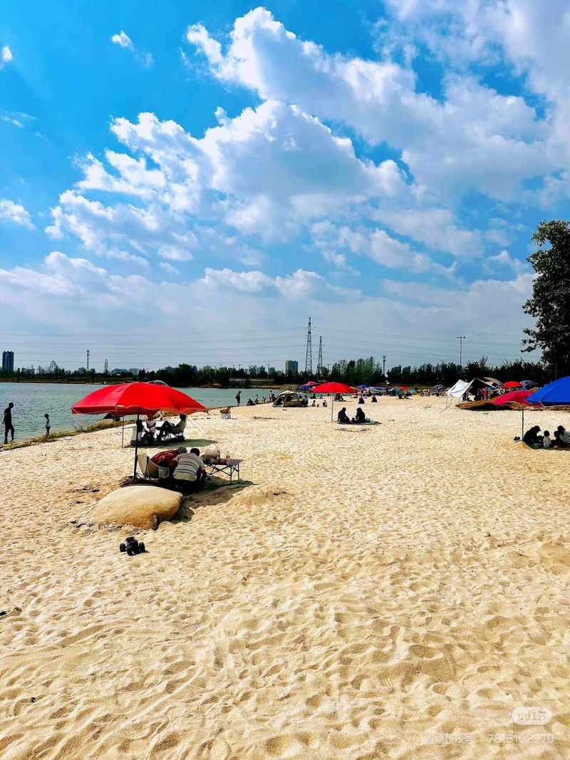 能源金貿區的灃河金灣沙灘分南北兩區,沙子細膩柔軟,是西安人私藏的浪漫打卡點,傍晚的“橘子海”更是出片天花板。