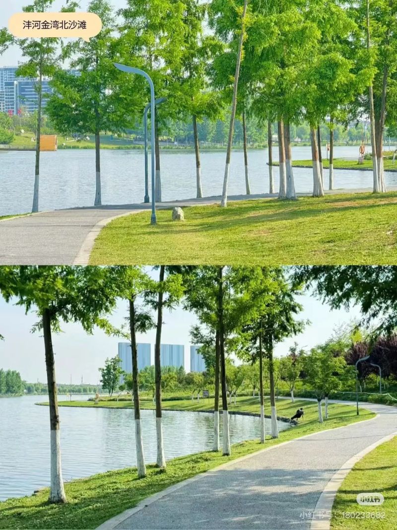 牽手沿岸邊漫步,晚風伴著灃河流水聲拂過,浪漫值直接滿格。夕陽西下時,整個沙灘和湖面被染成暖金色,波光粼粼的模樣像極了真正的海邊,氛圍顏值雙雙拉滿。