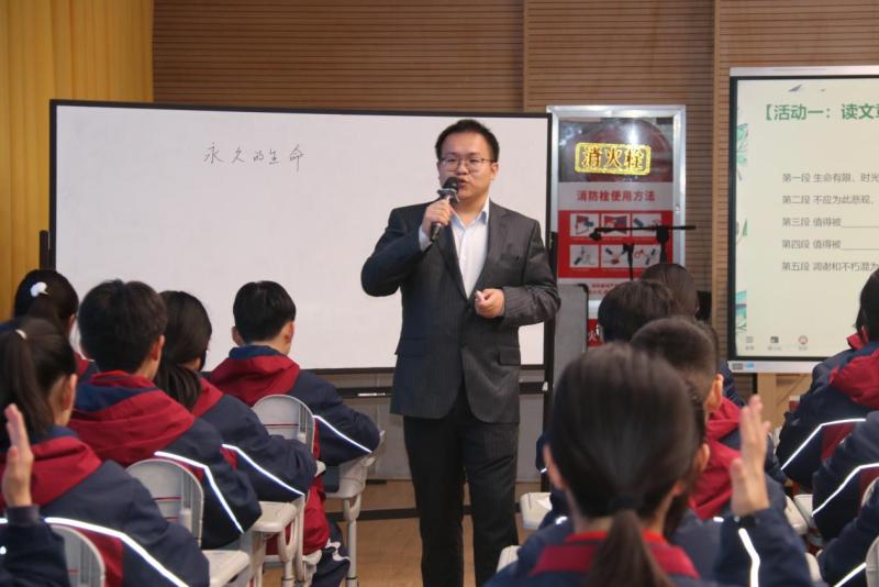 在課堂展示環節,說課教師分別進行八年級上冊單元整體教學說課,授課教師分別展示《背影》和《永久的生命》現場教學。