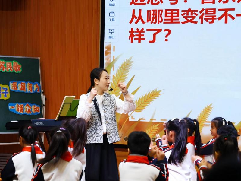 學科展示中,西安灃東第一學校王嘉欣老師執(zhí)教《打麥號子》、西咸新區(qū)涇河第二學校吳璐晨老師執(zhí)教《舂米歌》,兩節(jié)課緊扣學生年齡特點,傳授音樂知識,激發(fā)勞動熱情與民族文化自豪感,實現(xiàn)學科育人的深層目標。西安灃東第一學校王維平老師執(zhí)教《Places we live in part B let's learn & project》、灃東第二學校楊曉老師執(zhí)教《Unit 3 Places we live in Part B Let's talk》,引導學生關注身邊社區(qū),在真實語境中運用英語,提升綜合語言能力,有效落實學科素養(yǎng)。