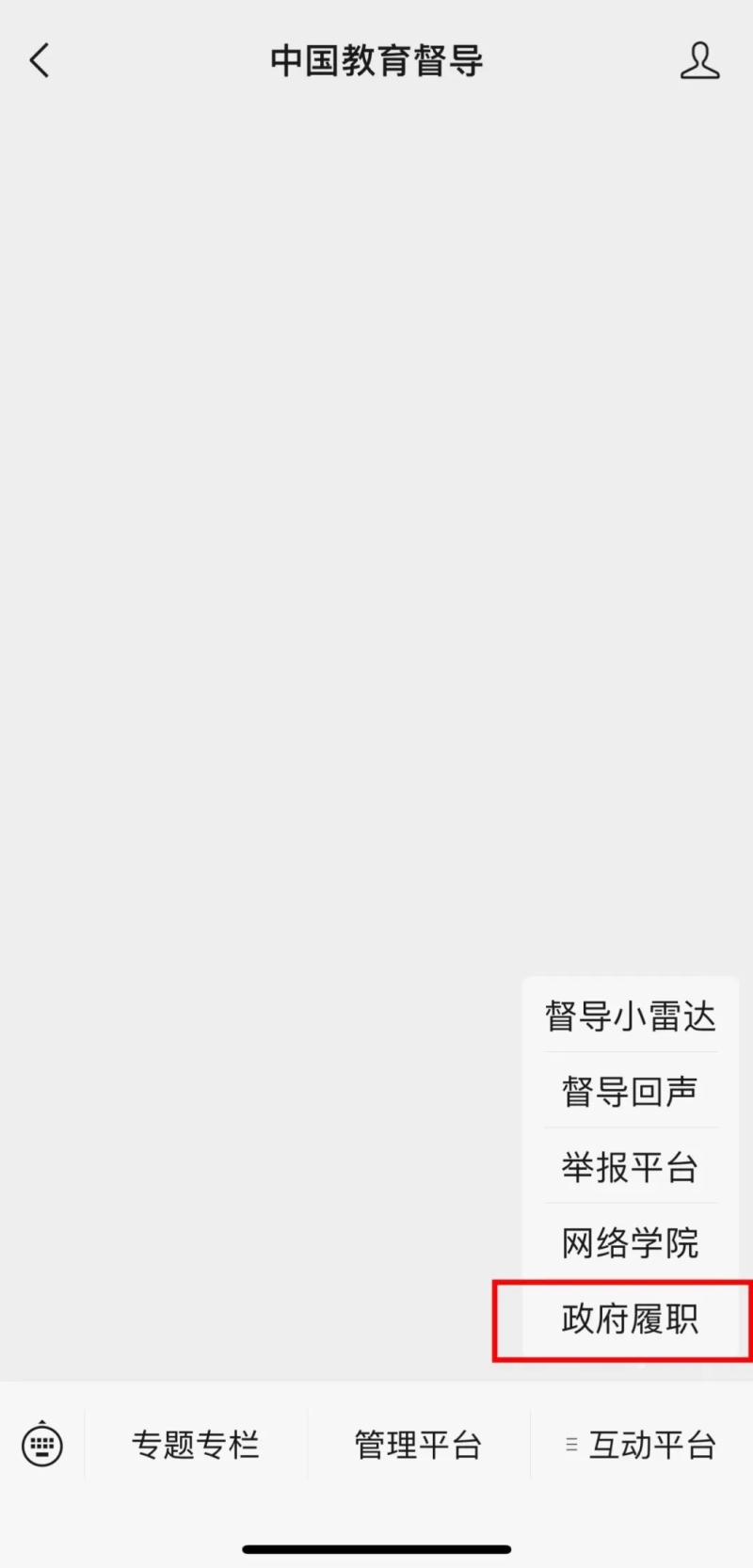 3. 選擇“政府履職”,進入問卷系統,根據各自身份(學生、教師和社會人士),選擇相應問卷填答